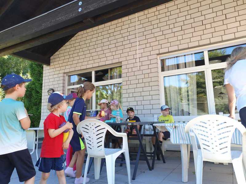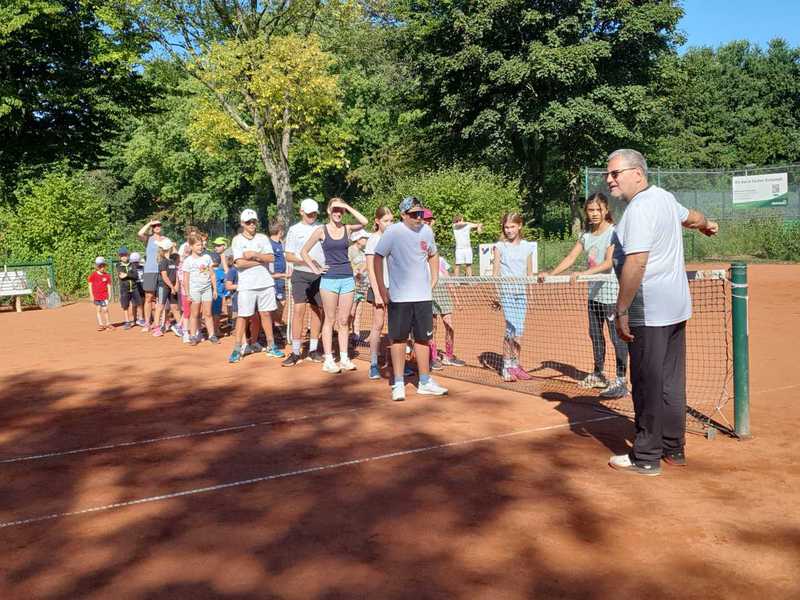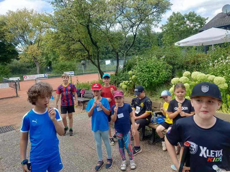 Bei bestem Sommerwetter fanden 36 Kinder und 7 Trainer den Weg zum Tennisplatz. Neben körperlicher Ertüchtigung und technischen Erkenntnissen, konnten die Kids diesmal auch den Hof Hänel, direkt