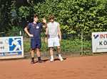 beim Punkt des Tages, als er überlobt wurde, rannte er zur Grundlinie und spielte den Ball durch die Beine und gewann den Punkt. Das Doppel wurde mit 6:3 6:3 gewonnen. Michael Korte gewann an